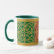 Elegant red and green Christmas holiday art with a vintage fleur-de-lis pattern in golds.