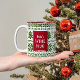 Personalise this wintery, green and white, knit, holiday sweater patterned mug with your name and holiday drink of choice and keep the Christmas cheer flowing all winter long.