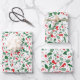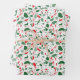 These wrapping paper sheets features green and red terrazzo pattern, each sheet showing a different sizeof the pattern.