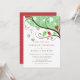 Green and Red Whimsical Lovebirds Wedding Invitation