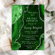 This elegant and glamourous bridal shower invitation features a green agate marble background with faux silver glitter accents. The text combines handwritten script and modern sans serif fonts for a classy and sophisticated look. This will be perfect for autumn fall and winter bridal showers.