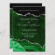 Elegant agate geode wedding invitations in emerald green and silver faux glitter colours.