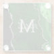 This coaster features an elegant and glamourous agate marble background with geode gemstone detailing and faux silver glitter accents. The monogram combines handwritten script and modern sans serif fonts for a classy and sophisticated look. This will make the ideal gift as it can be customised with a name and initial. The deep green hues make it perfect for autumn fall and winter.