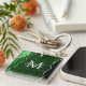 This keychain features an elegant and glamourous agate marble background with geode gemstone detailing and faux silver glitter accents. The monogram combines handwritten script and modern sans serif fonts for a classy and sophisticated look. This will make the ideal gift as it can be customised with a name and initial. The deep green hues make it perfect for autumn fall and winter.