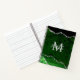 This notebook features an elegant and glamourous agate marble background with geode gemstone detailing and faux silver glitter accents. The monogram combines handwritten script and modern sans serif fonts for a classy and sophisticated look. This will make the ideal gift as it can be customised with a name and initial. The deep green hues make it perfect for autumn fall and winter.