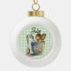 "Green and White Chequered - Spoons in Cup Ceramic Ball Christmas Ornament