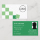 Green and White Chessboard with Logo & Photo Chic Business Card