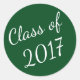 Bright white text on a dark green background spells out Class of 2017. You can change the background colour and text colour to match your school colours or graduation party decor. You can change the actual text as well. The 2017 can be made into any graduation year. This colourful graduation sticker is a great way to seal graduation announcements, graduation invitations and graduation party invitations. They look great when you stick them on a graduation cap too!