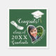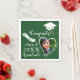 Create unique green and white graduation napkins for the class of 2025 graduate with a heart-shaped photo (use the template to upload your picture), Congrats saying, and grad's cap and diploma illustrations. It's easy to change the background colour inside the design tool to match your school colours. Please, personalise with the graduate's name and surname, upload a custom photo, and add a year before ordering.