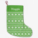 Green and White Fair Isle Monogram Small Christmas Stocking