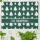 Destei's original pattern of simple white Christmas fir tree silhouettes on a green background colour. There is also a personalizable text area for a name or other custom text.