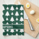 Green And White Fir Christmas Tree Pattern & Text Tea Towel