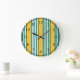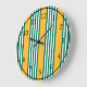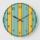 Green and white five stripe pattern with yellow large clock