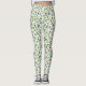 White leggings printed all over with hand drawn illustrations of green garden herbs