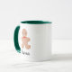 This mug has a picture of a cute gingerbread boy wearing a red bow tie and decorative peppermint candy buttons. The gingerbread boy has slightly darker edges to give it the appearance as if it popped fresh out of the oven. Fine icing detail forms his coat and pants. Personalize this mug by adding a name or message.
