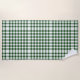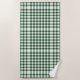 Handsome custom beach towel features green, white, and light green squares in a bold green and white gingham block plaid.