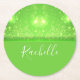 Green and white glitter print round paper coaster