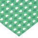 This tablecloth features a repeating argyle pattern of green and white hearts on a green background.