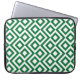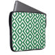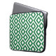 This bold green and white geometric pattern is an original ornamental design. White meanders angle around green diamonds containing white diamonds. Green zigzags provide subtle separation between the winding paths.
