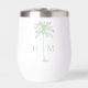 This coastal inspired monogrammed thermal wine tumbler features a preppy green palm palmetto tree on white with a monogram that you can personalize with your choice of initials on each side. Great for personalized gift bags and party favors.