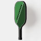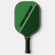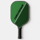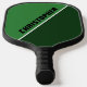 Modern, sporty pickleball paddle featuring a simple clean design in a light green and a dark green opposite each other on diagonal sections separated by a white stripe. On the light blue side there is a template to add your name or other text in black lettering by simply replacing the name in the text box.