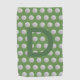Add your initial to this moss green and white golf ball polka dot patterned golf towel. Suitable for all golfers and dads' that love being on the green