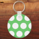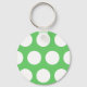 White polka dot pattern on pale green. You can add a personalized text message or a monogram. Create your own monogramed polka dotted keychain.