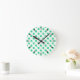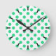 Green and white polka dots round clock