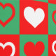 Green and White Red Hearts Check Pattern Christmas Wallpaper
