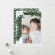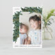Rustic Green Pine Garland with White Botanical Pattern on Back Photo Holiday Christmas Card.