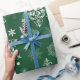 Statement Christmas or holiday wrapping paper with a vintage Green and White snowflake pattern