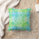 Spiral shapes in shades of green on white background. Distressed effect applied to the pattern. Decorative pillow for homes and businesses. Gift idea.
