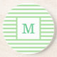 Green and White Stripes Custom Monogram Sandstone Coaster