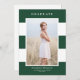 Announce your graduation with this customisable photo graduation announcement. It features green and white stripes pattern. Personalise this modern graduation announcement by adding a photo, name, school, year and other details. This photo graduation announcement card is available in other cardstock.