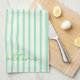 Green and White Stripes Pattern Tea Towel