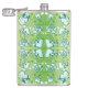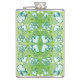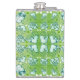 Green and white Whimsical Romantic Hearts pattern Hip Flask