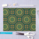 Seamless decorative pattern featuring geometric shapes in shades of yellow on a green background.