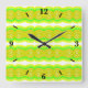 Square Wall Clock, wall art decoration and home furnishing decor accessory printed with Green And Yellow Figure Eight Ribbon Pattern retro pop art ribbon candy style abstract geometric design patterned original artwork illustration by TheFabricSeal print on demand shop at Zazzle.com #ZazzleMade https://www.zazzle.com/store/thefabricseal TheFabricSeal©️Original.