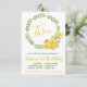 Let's gather for a birthday celebration. Add your personalised event details to the cute, green and yellow floral wreath party invitation.