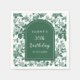 This beautiful and elegant birthday party napkin features an antique green Chinoiserie pattern. The text combines handwritten script and serif fonts for a stylish and modern look. This is perfect for a spring or summer garden birthday party.