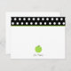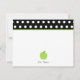 Flat notecards featuring a black border with white polka dots and green trim at top. Illustration of a green apple at bottom. Personalise with your name under apple.