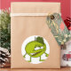 Green apple cartoon character with a vicious smile classic round sticker