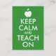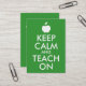 Green and white customisable apple shape "Keep Calm and Teach On" parody design for teachers based on the classic poster. You can delete the contact information on back or change the font size and style.