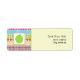An address label featuring an illustration of a green apple inside white square outlined in green at left. Background at left is rows of multicolored dots in various sizes. Personalise the text at right.