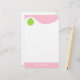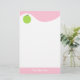 Stationery featuring a pink, green and white colour scheme and a green apple at top left. Personalise with your name in white at bottom centre.
