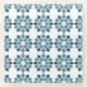 Keep your tables safe from water rings with this stylish and modern blue floral geometric pattern coaster set. The design features a symmetrical, mandala-style flower mosaic in various shades of navy and cobalt. Perfect for adding a pop of color and an elegant, vintage, or Bohemian feel to any home decor.