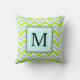 Green & Aqua Blue Chevron Custom Monogram Cushion