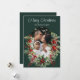 An elegant Christmas Holiday Card with a photo in an arch decorated with holly trees. Decorated with traditional "Happy Christmas" message in white in a calm moss green background. Add your own family photo.