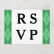 Classic and elegant Argyle Wedding RSVP Postcard with a simple green diamond argyle pattern background. Easy to customise with your wedding details. For more customisation options, click on the Customise It button.