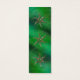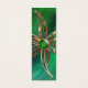 An abstract work in bright green and copper. A clear green gem is surrounded by copper-edged blades of grass accented with sparkling emeralds and orange starbursts. The waving, curving fractals in the background appear in deeper green, brown, and orange inside the copper filigree of the leaf motif.